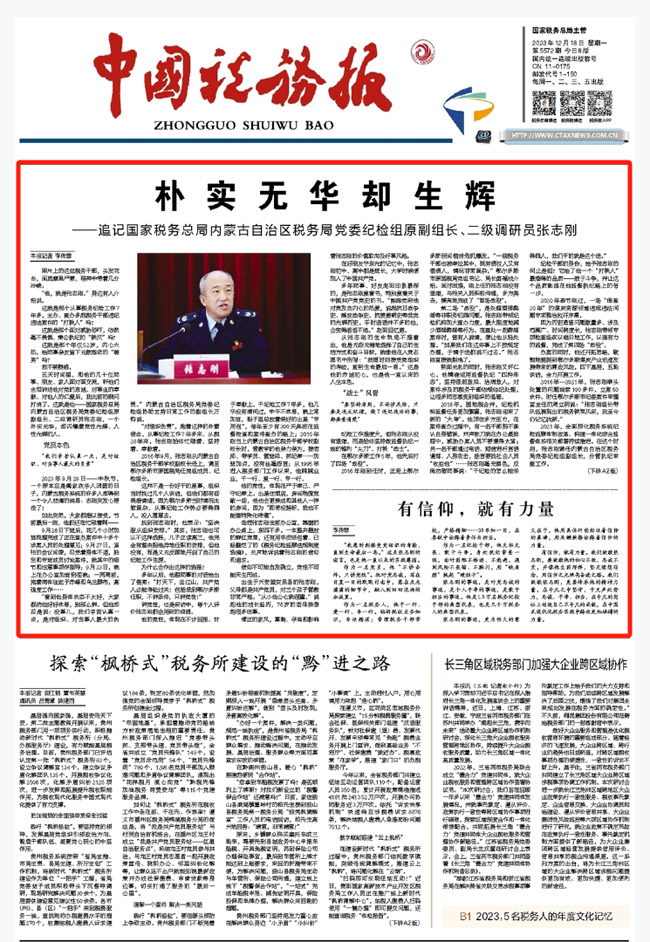 五天时间里,和他的几十位同事、朋友、家人面对面交流,听他们含泪讲述他对党的忠诚、对事业的奉献、对他人的仁爱后,我此前的疑问打消了。这就是他——国家税务总局内蒙古自治区税务局党委纪检组原副组长、二级调研员张志刚,一个朴实无华,却闪耀着党性光辉、人性光辉的人。