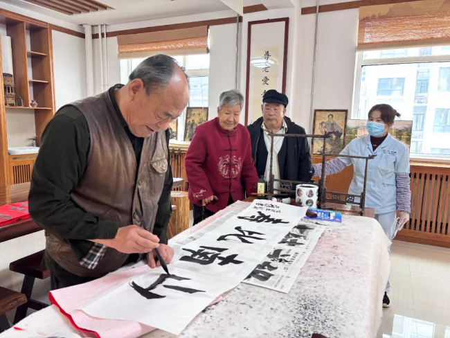 舒明苑康养家园的老人参加书画创作活动。高静/摄