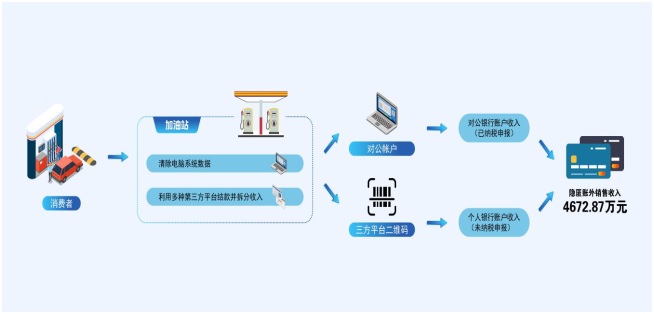 面对证据,李长龙仍狡辩称是亲属间借款。检查人员依法调取相关人员账户流水,再次比对支付时间、金额分布等数据,结合相关证据,查实该加油站对公银行账户收款按规定正常申报纳税,而平台收款码收取的大部分加油款则未进行申报纳税,共计隐匿销售收入4672.87万元。