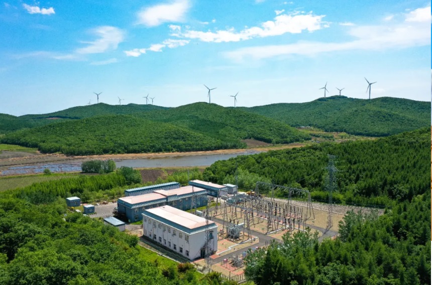 位于群山之间的黑龙江东方风力发电有限公司兴凯湖风电场。