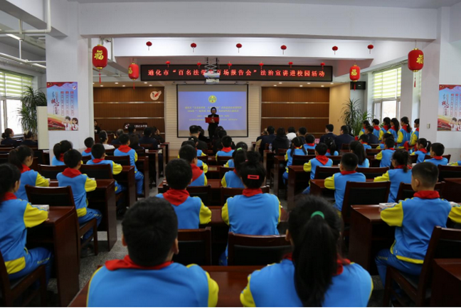 为推动普法由部门联建走向社会融合,通化市税务局与司法局、教育局等部门协同,推广《税法教育读本》,走进高中、图书馆、乡镇文化室,赢得各界好评。在五道江中心小学成立全市首家“青少年税收法治宣传教育实践基地”,将税法春风吹向乡村,2023年税收宣传月期间,活动覆盖9校14次,6500余名学生受益。为实施普法宣传跨省联动,通化市税务局通过视频连线,与甘肃漆家和小学共上税法课,分享税收故事与文化;代表吉林省参与多省联合青少年普法直播,让通化税宣之声传遍南北,展现了基地的示范引领作用。