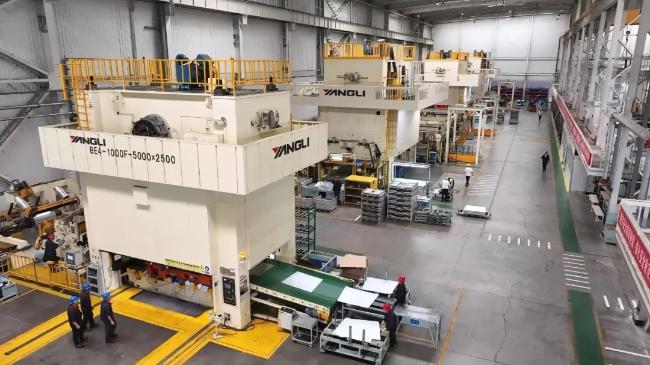来金(天津)汽车零部件有限公司生产车间中的多工位自动冲压线。孙晓斌 刘鹏/摄