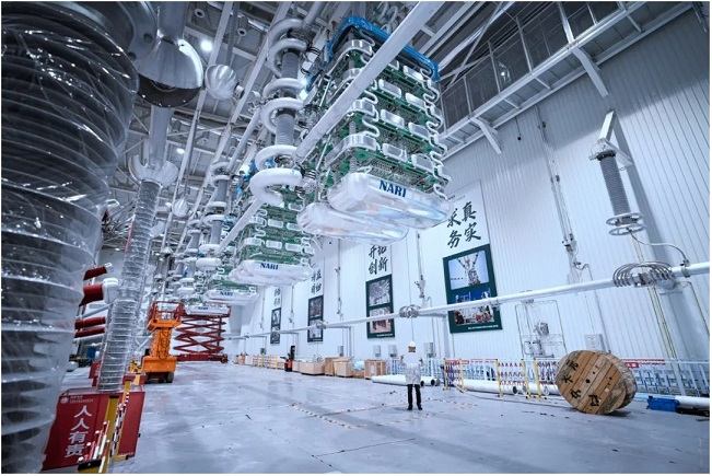图为南瑞集团员工在渝北±800千伏换流站开展试验工作。