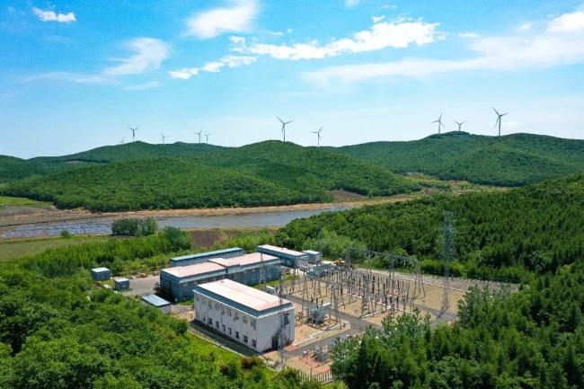 位于群山之间的黑龙江东方风力发电有限公司兴凯湖风电场。