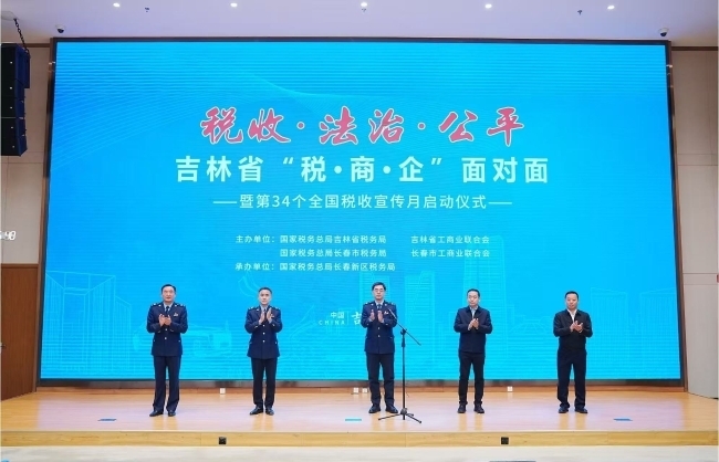 4 月 1 日,吉林省“税・商・企”面对面活动暨第 34 个全国税收宣传月启动仪式在长春举行。本次活动由国家税务总局吉林省税务局联合长春市税务局、长春市新区税务局共同主办,聚焦“税收・法治・公平”主题,通过政企互动、政策宣讲等形式,为市场主体提供精准服务。省局党委书记、局长王宏伟,省工商联党组成员、副主席吕兵,长春市局党委书记、局长吕徽等领导出席活动并致辞,吉林省江苏商会、闽商总会及长光卫星等30家企业代表参与交流。